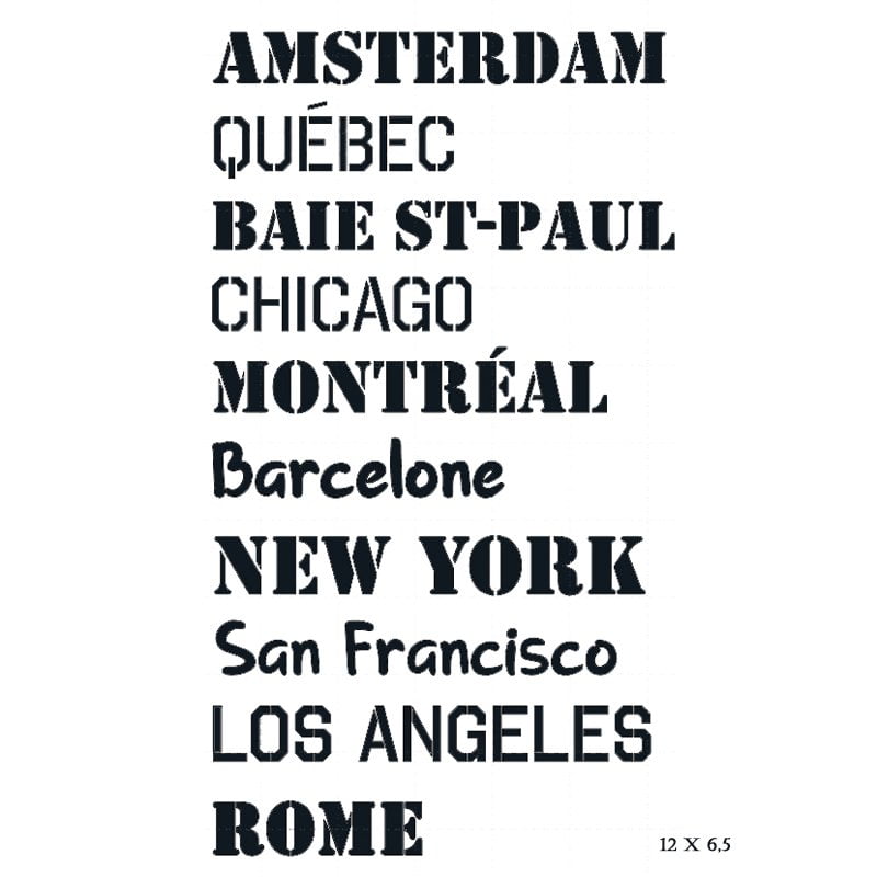 Pochoir réutilisable, format 12 x 6.5 pouces en mylar et/ou plastique 200 gms. Idéal pour peindre, en négatif et en relève de même que pour l’ajout de texture sur mainte surfaces.