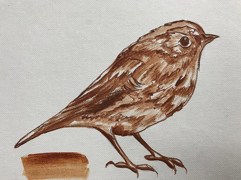 Dans la vidéo j’utilise les couleurs suivantes : sienne brûlée, sienne naturelle, ombre brûlée, noir d’ivoire, bleu ultramarine, bleu cyan primaire, Blanc de titane