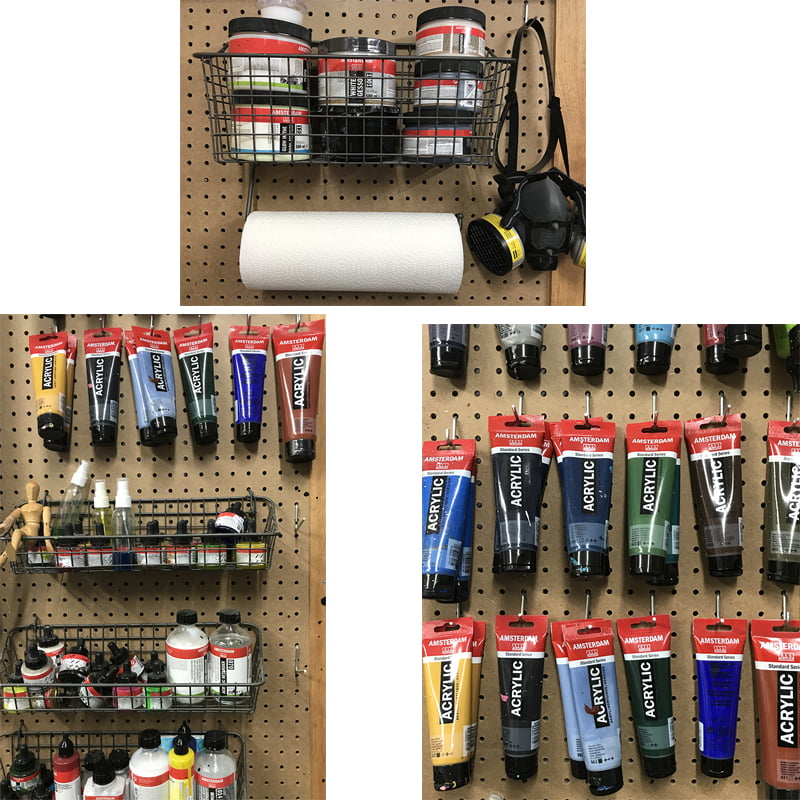Paniers et crochets de rangement pour panneau perforé
