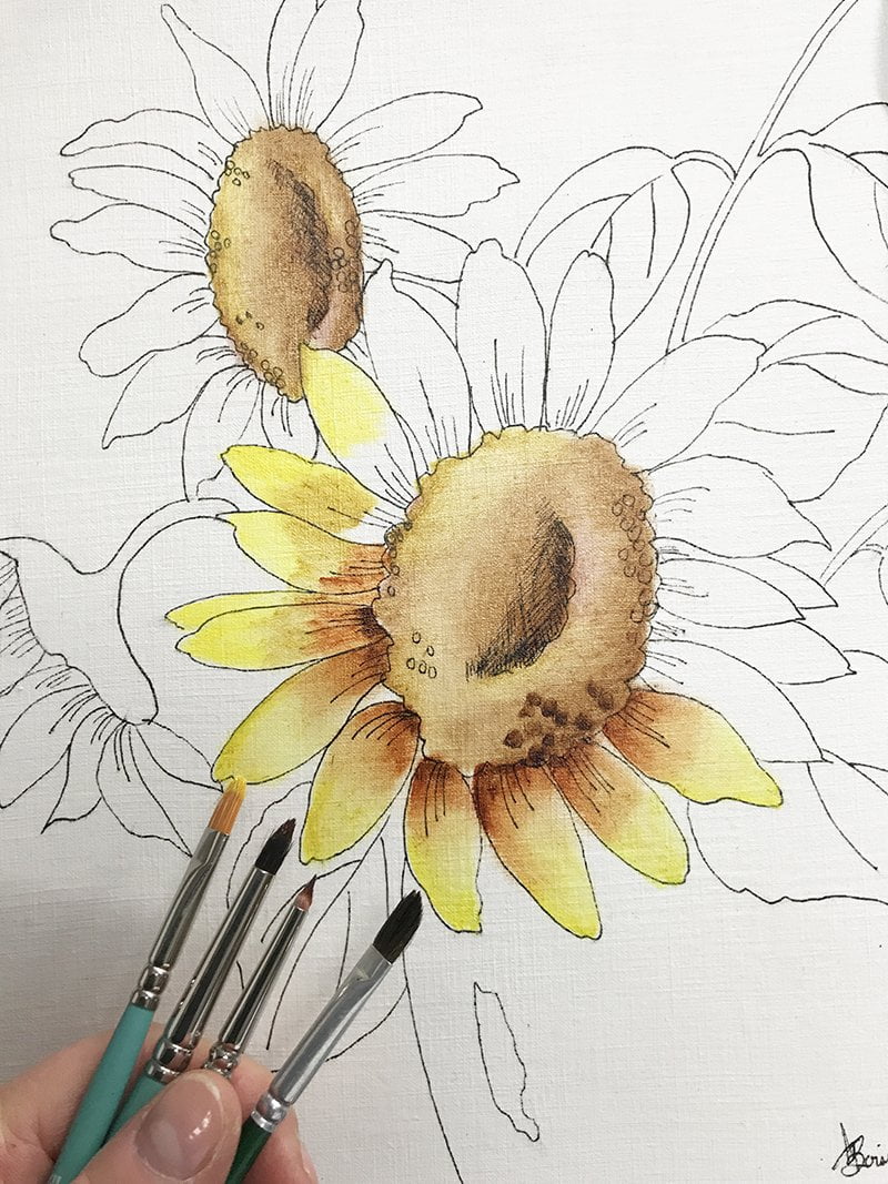 Cela consiste à dessiner d’abord à l’encre un dessin, auquel sera par la suite ajouté de la coloration à la peinture à l’huile.