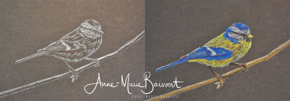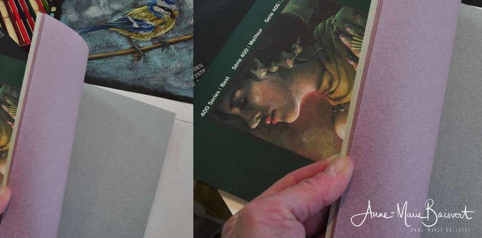 J’ai choisi de travailler sur du papier pastel mi- teintes noir. Sachez que le papier pastel existe dans une variété de teintes, de textures et de marques différentes.