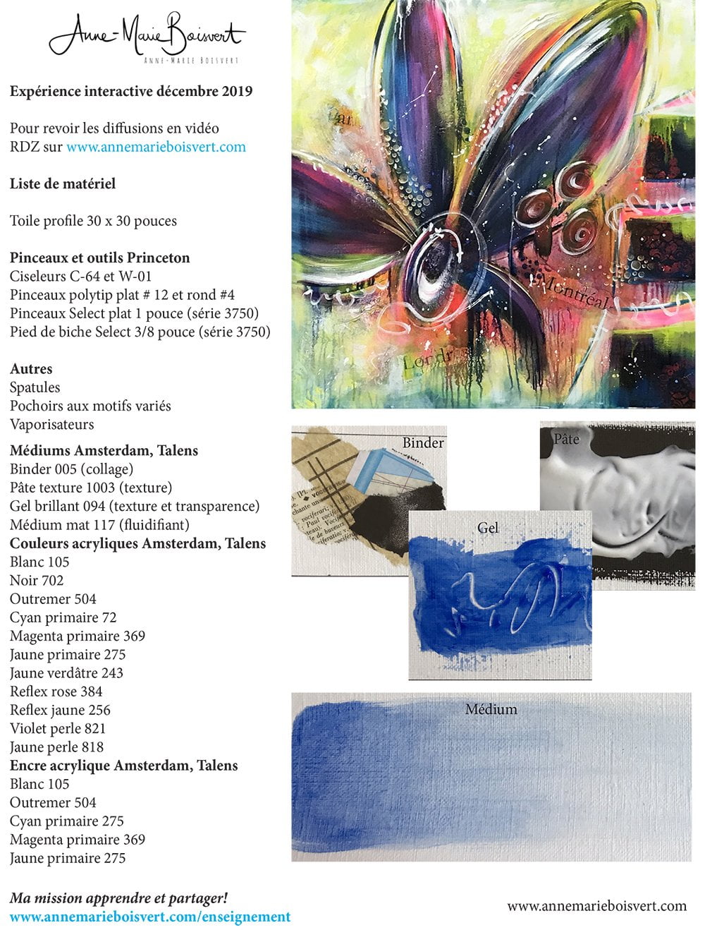 Liste du matériel utilisé lors de l’élaboration de l’oeuvre peinte ici-bas
