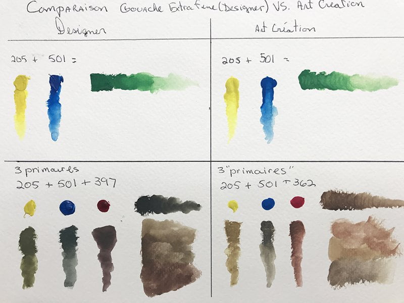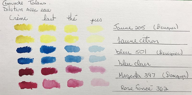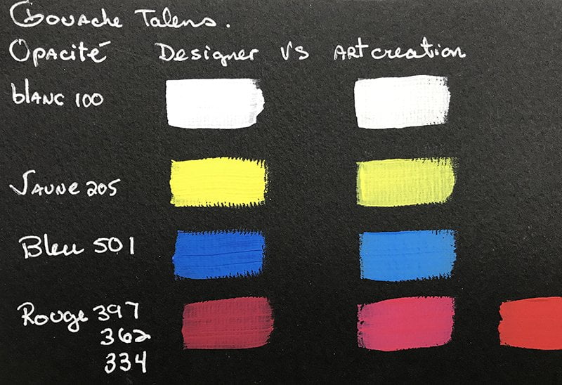 Au banc d’essai et comparaison : gouache Extra fine Designer Talens et gouache Art Creation Talens