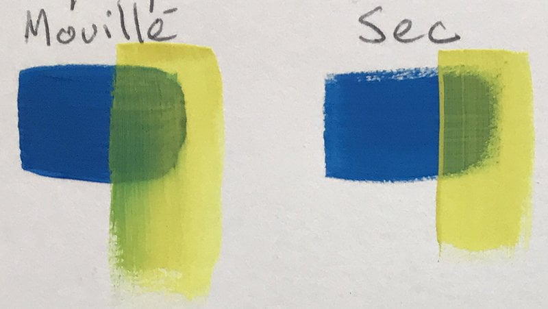 Cet aspect est un avantage mais aussi un inconvénient; sachez que la superposition de couleurs à la gouache est envisageable mais on conseille d’utiliser très peu d’eau lors des applications successives. Pour éviter de réactiver les précédentes couleurs on déposera sans trop retravailler la surface si on ne souhaite pas ‘’réveiller’’ les sous-couches.