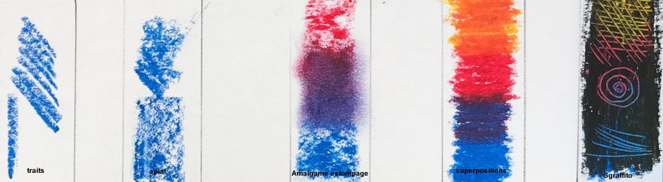 Créés pour prolonger le geste de la main les pastels gras ou pastels à l’huile s’emploient tel un crayon mais également au pinceau; pour se faire, on prélèvera la couleur sur le bout de la craie pour ensuite l’appliquer sur la surface. Pour plus de facilité l’emploie de White Spirit est parfois conseillé.