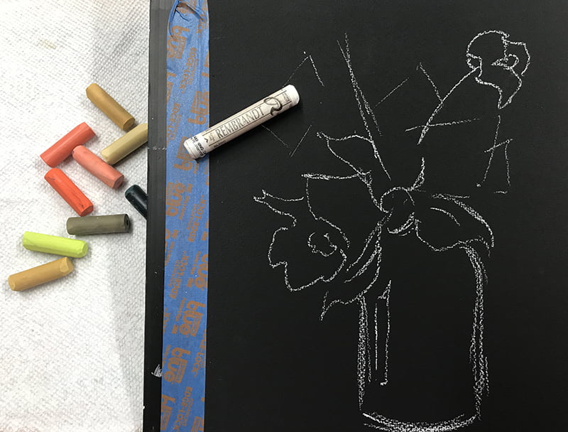Truc du métier : les pastels tendres se superposent plus facilement en utilisant d’abord les variétés les plus dures (tel que les carrés), il est ensuite possible d’utiliser les plus tendres et friables; il est recommandé de travailler gras sur maigre car si on sature le support il sera difficile d’en superposer d’autres couches. À noter certain artiste effectuent des lavis comme couches préalable avant de crayonner le pastel dans son état ‘’poudreux’’. Travaillez-les sur la pointe, sur le tranchant, a plat à vous de choisir ce qui convient à votre réalisation. Dans la vidéo jointe a cet article je vous démontre plusieurs façons de les employer.