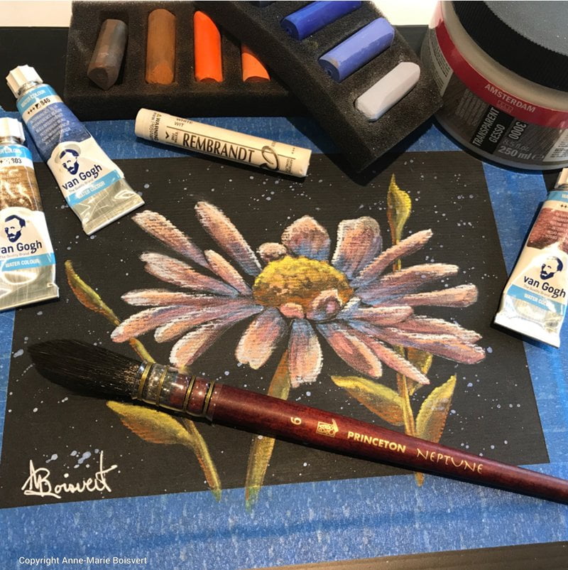 –Pastel sec Rembrandt (couleurs variées au choix) Pinceau aquarelle Quill de Princeton (ou autres selon votre choix)
