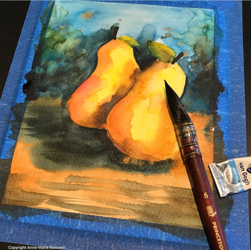 L’aquarelle est un médium super intéressant à utiliser pour colorer le papier avant de peindre au pastel sec. Bien entendu les adeptes de pastel utilisent souvent des papiers colorés conçus pour cette tâche, d’ailleurs il en existe plusieurs teintes sur le marché.