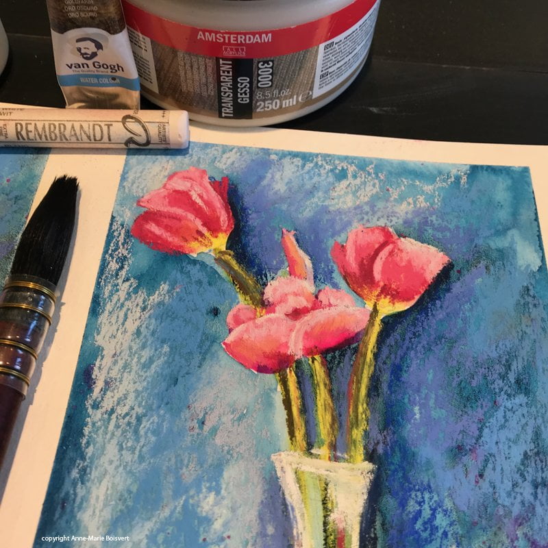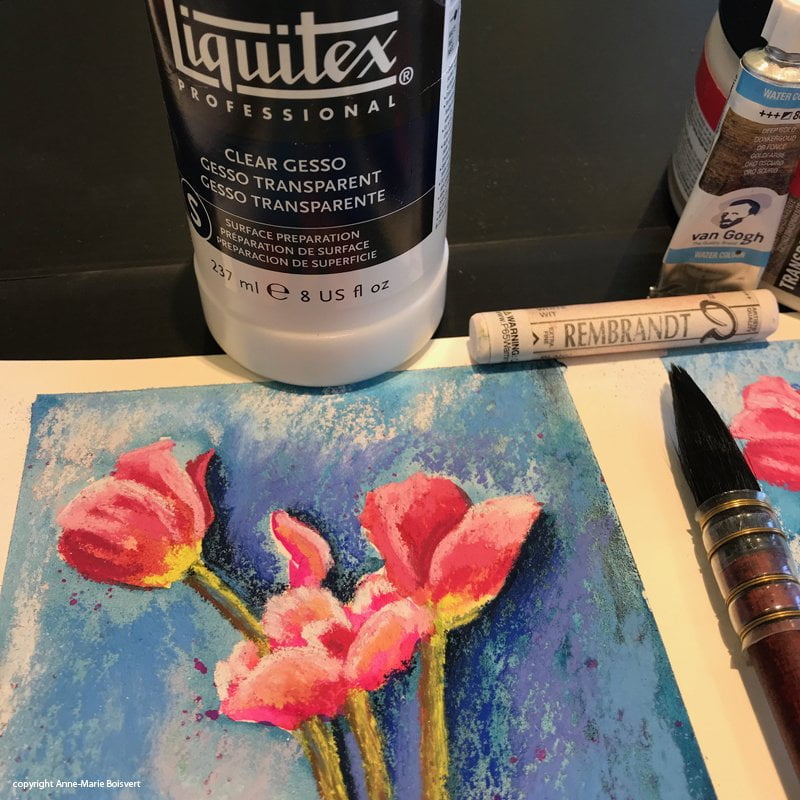 Pastel sur Gesso liquitex VS pastel sur Gesso Amsterdam transparent dans les exemples qui suivent.